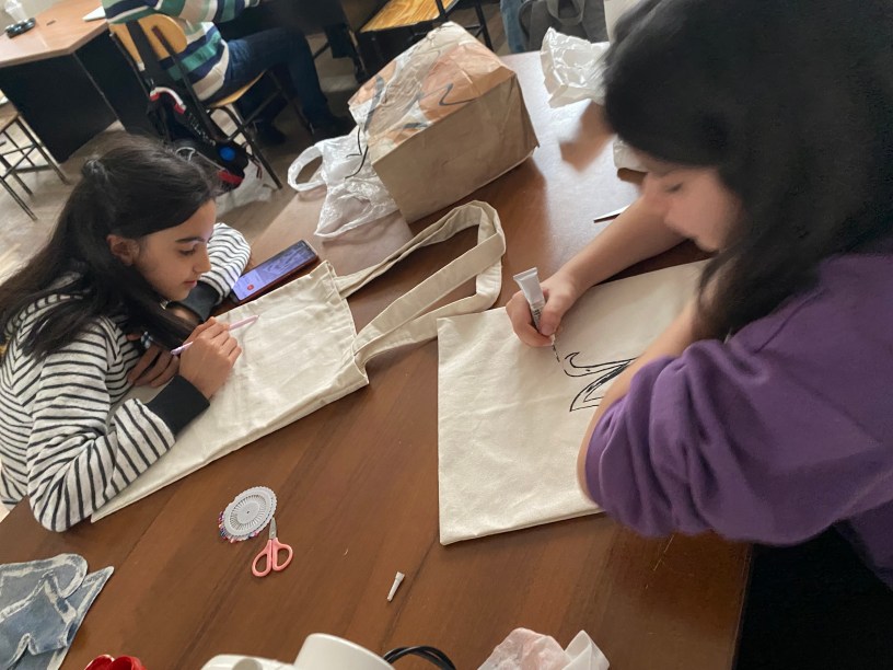 Երկարացված օրվա ճամբարականներիս հետ իրականացրած ամենաստացված նախագծերից եմ համարում Էկոպայուսակների ստեղծումը: Նախագիծը տևել է մեկ ամբողջ ուսումնական շրջան, հա-հա՛… չորս ամիս: Կտորի գնումից, ձևում, կտրումից մինչև պատրաստի պայուսակ և դրա նկարազարդումը: Յուրաքանչյուր սովորող ինքնուրույն անցել է ամբողջ ստեղծական գործընթացը: